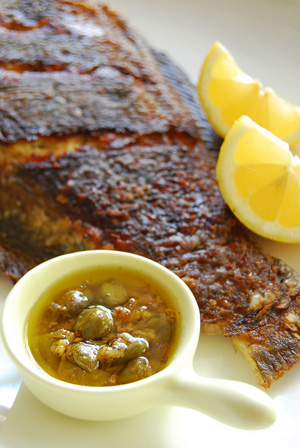 Fried Fish with Garlic Lemon Butter Caper Sauce