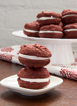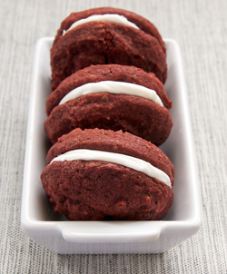 With these cookies, you can enjoy all the flavors of classic Red Velvet Cake in a cute little sandwich cookie.